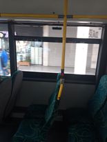 Στις πρώτες δύο φωτογραφίες φαίνεται το "παράθυρο" στα Volvo. Αυτό λοιπόν είναι το "17%" της επιφάνειας. Τέσσερα τέτοια έχει ολόκληρο το λεωφορείο, εκ των οποίων τα δύο είναι στην αριστερή πλευρά πιό πίσω από τη μέση. Δηλαδή, το μπροστινό τμήμα του λεωφορείου δεν μπορεί να αεριστεί διότι - απλούστατα - δεν κάνει ρεύμα από πουθενά. Δεν περιγράφω κάν το γεγονός ότι το ελάχιστο άνοιγμα του παραθύρου "σκάει" ακριβώς πάνω στο πλαστικό δοκαράκι του τζαμιού, με συνέπεια να μην μπορεί να κυκλοφορήσει καθόλου ο αέρας. Το πραγματικά ανοιγόμενο τμήμα είναι 1,50 χ 0,30 = 0,45 τ.μ. χ 1/3 ανάκλιση = 0,15 τ.μ. Τέσσερα τέτοια μας κάνουν 0,60 τ.μ. επί συνόλου 17 τ.μ. υαλόφρακτων. Ποσοστό 3,52% πραγματικό άνοιγμα ή 10,58 % "ονομαστικού" ανοίγματος.