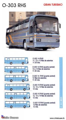Πέντε από τα διαφορετικά μοντέλα O303 που κατασκεύασε η Mercedes Benz, και οι επιμέρους εκδόσεις τους, ανάλογα με το μήκος, των αριθμό των θέσεων, καθώς και το είδος και τη θέση των θυρών.