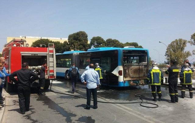 Στις φλόγες τυλίχτηκε, υπό άγνωστες συνθήκες, ένα λεωφορείο του αστικού ΚΤΕΛ, στην πλατεία Ελευθερίας, στο κέντρο του Ηρακλείου, λίγο μετά τις 13.00 το μεσημέρι.