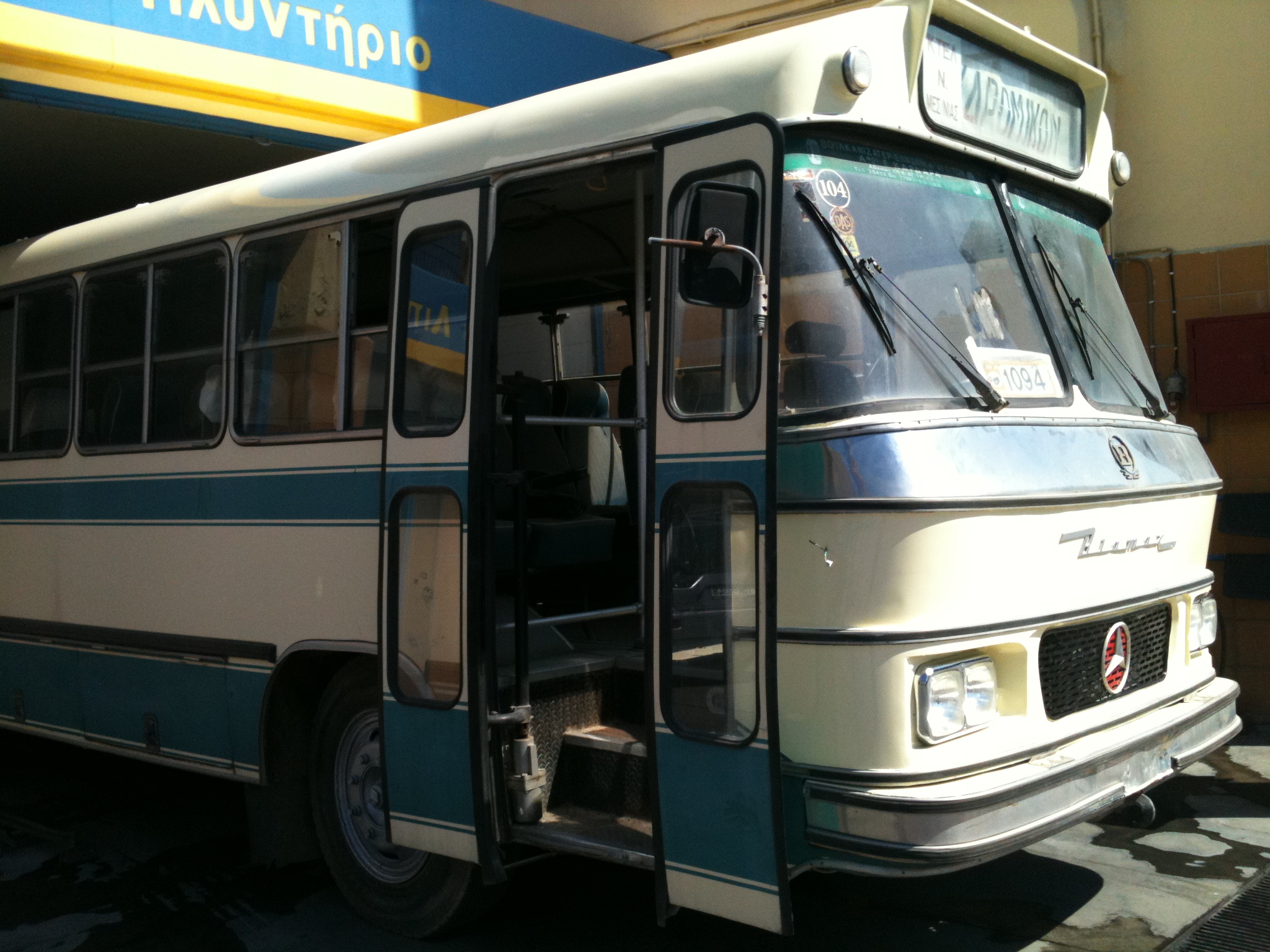 Ο φωτογράφος του “Newsbomb” απαθανάτισε αυτό το λεωφορείο στη διαδρομή από τον Πειραιά στους χώρους που γίνονται οι πρόβες για την παράσταση «Ηρακλής μαινόμενος» του Εθνικού Θεάτρου. Πρόκειται για ένα μοναδικό υπεραστικό λεωφορείο Mercedes R495 που κατασκευάσθηκε πριν από πέντε δεκαετίες στη θρυλική βιομηχανία «Βιαμάξ».