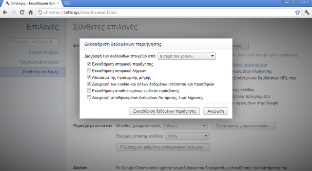 Διαγραφή των cookie και άλλων δεδομένων ιστότοπου και προσθηκών