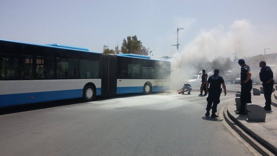 "Ο οδηγός διατήρησε τη ψυχραιμία του καθώς είχε αντιληφθεί τις φλόγες την ώρα που έστριβε από την Αβέρωφ με κατεύθυνση προς τη στάση του λεωφορείου στην Πλατεία Ελευθερίας. Όλοι οι επιβάτες κατέβηκαν με ασφάλεια από το λεωφορείο", εξηγεί ο κ. Βουλγαράκης.
