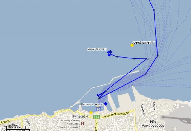 Προσθέτω και φωτογραφίες που τράβηξα με το Superfast XII το οποίο έχει δέσει έξω απο το λιμάνι αφού πρώτα μπήκε και βγήκε χωρίς να αποβιβάσει επιβάτες καθώς και ένα στιγμιότυπο απο το marinetraffic.com