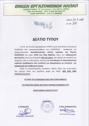 Δείτε την ανακοίνωση της Ένωσης Εργαζομένων ΗΛΠΑΠ: