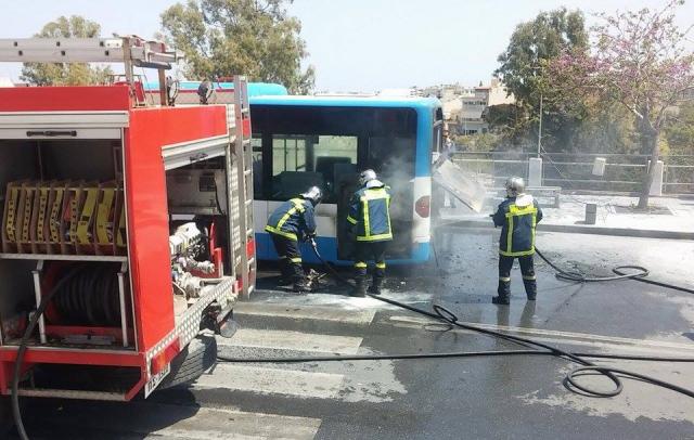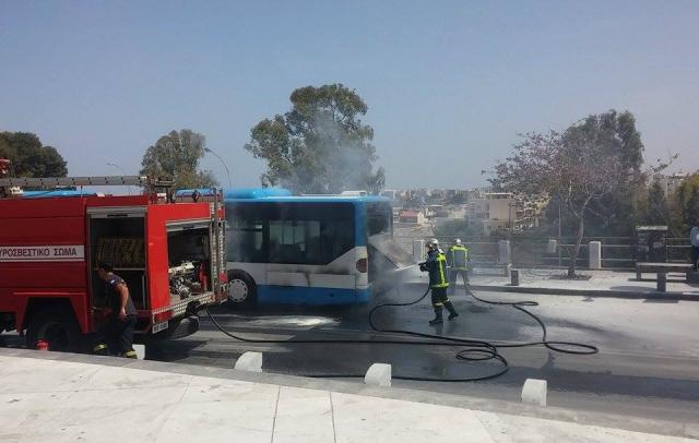 Στις φλόγες τυλίχτηκε, υπό άγνωστες συνθήκες, ένα λεωφορείο του αστικού ΚΤΕΛ, στην πλατεία Ελευθερίας, στο κέντρο του Ηρακλείου, λίγο μετά τις 13.00 το μεσημέρι.