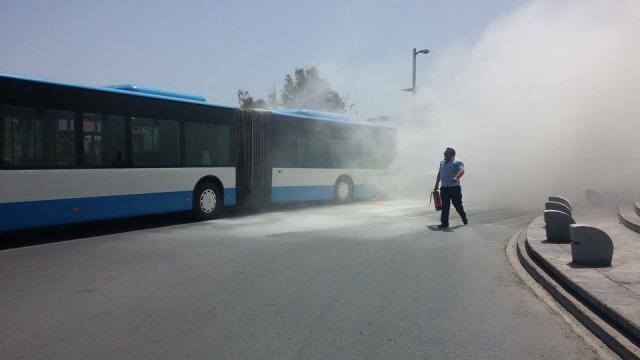 Αμέσως οι επιβάτες του οχήματος βγήκαν έξω ενώ αμέσως έσπευσε η πυροσβεστική που έσβησε τις φλόγες που τύλιξαν το λεωφορείο προκαλώντας αναστάτωση και τρόμο στους διερχόμενους πολίτες.