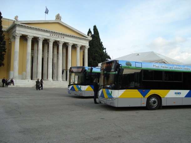 Τα 2 νεοφερμένα λεωφορεία μπροστά από την είσοδο του Ζαππείου